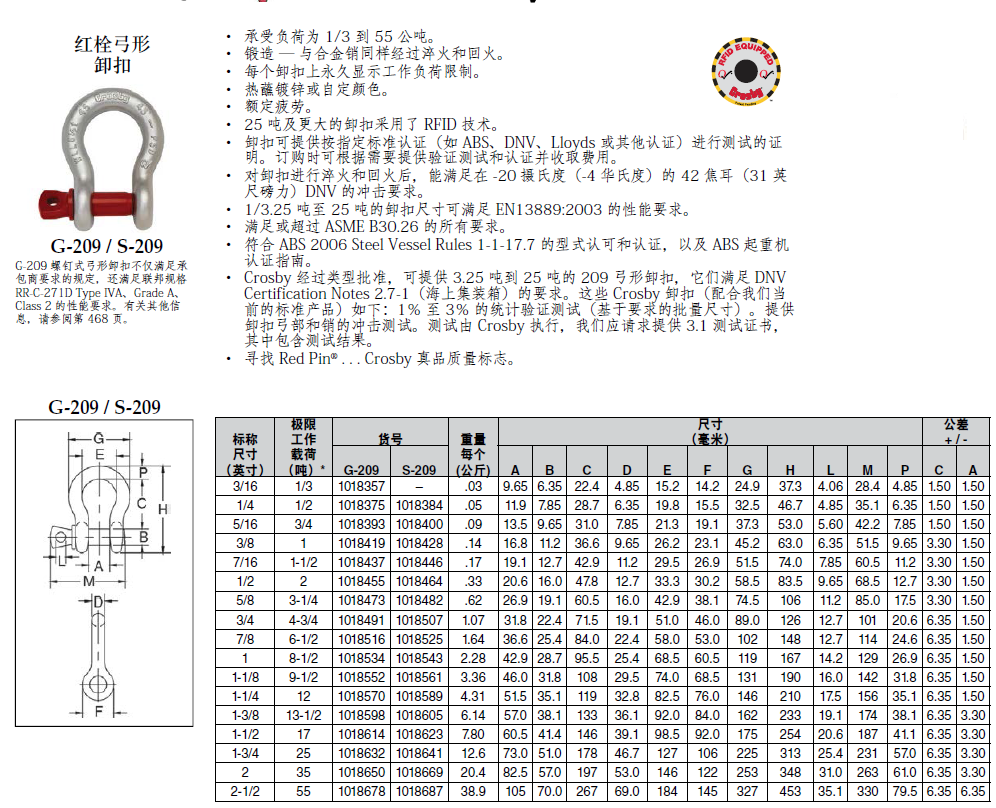 美国Crosby弓型卸扣G209
